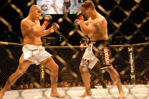 Vancleave and Okunola walk into the cage. They stand at opposite corners of the Octagon. They glare at each other, oblivious to everything else outside the cage. Then, they begin to pivot their feet and move towards the middle of the mat. Okunola japs his fist towards the center of Vancleave’s chest. Vancleave pivots to the left. It’s like a dance. After a few minutes, the two figthers switch positions. Okunola kicks Vancleave in his side. Sweat drips from their foreheads but the two don’t even look out of breath.